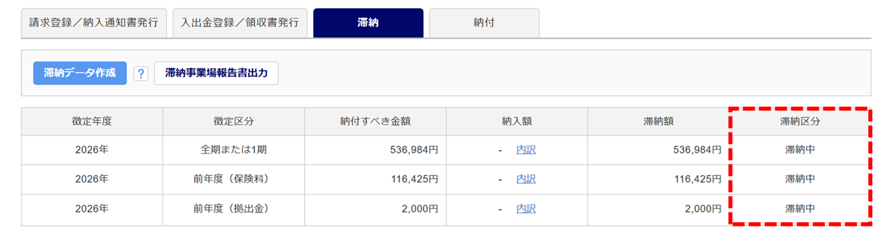 滞納データが作成され、一覧に表示されます。