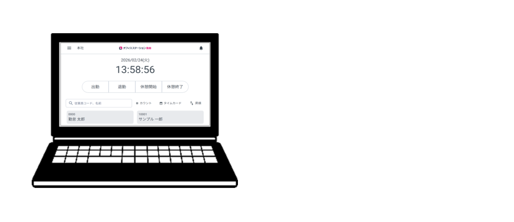 インターネットブラウザで打刻用URLにアクセスするタイプのタイムレコーダーです。