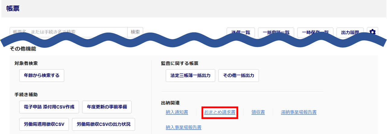画面下部の「その他機能」内[おまとめ請求書]をクリックします。