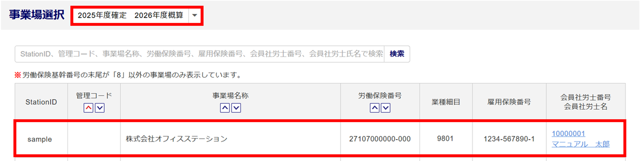 「労働保険料等算定基礎賃金等の報告のアラート」画面が表示されている場合、本マニュアル内「「労働保険料等算定基礎賃金等の報告のアラート」画面が表示されている場合」をご確認ください。