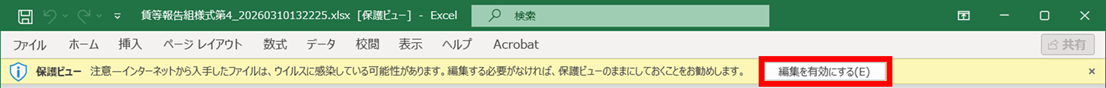 PCに保存したファイルを開き、[編集を有効にする(E)]をクリックします。
