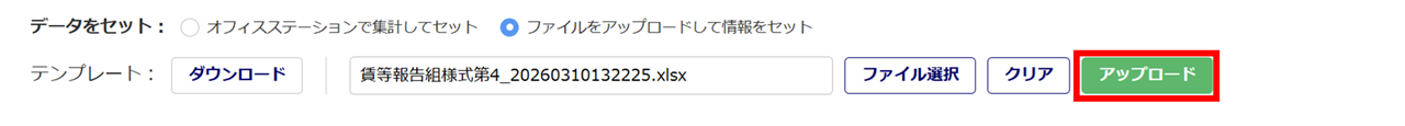 「ファイルをアップロードして情報をセット」を選択し、ファイルをアップロードした場合