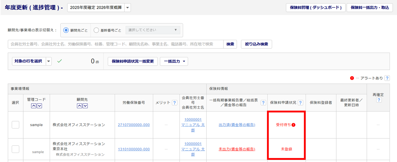 本操作後も「保険料管理のアラート」画面は表示されたままとなります。
