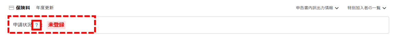 保険料の申請状況が表示されます。状況のステータスについては、画面の[(はてなマーク)]をクリックすると詳細な説明を確認できます。