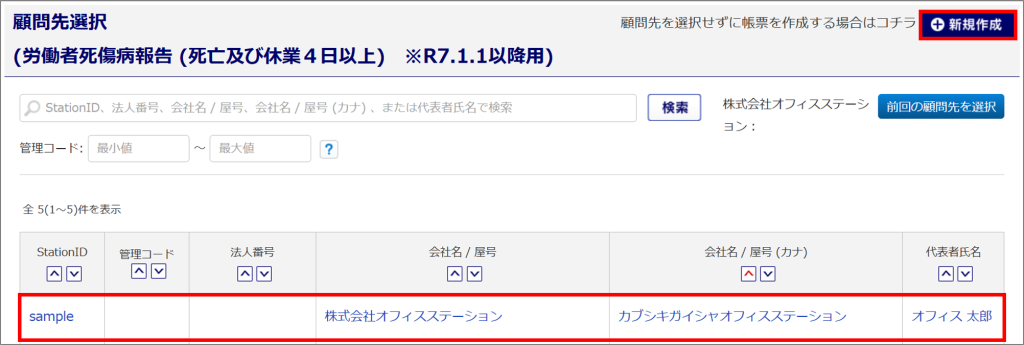 ※顧問先を選択せずにスポットでのお手続きの場合は、[新規作成]をクリックしてください。