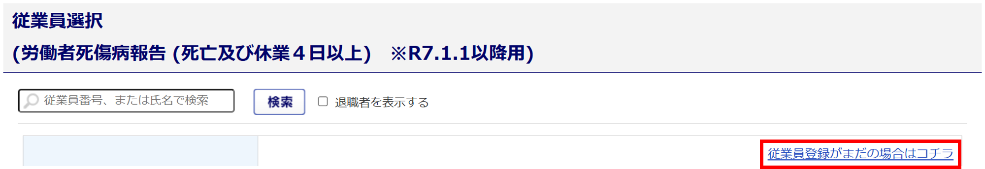 「従業員登録がまだの場合はコチラ」をクリックしご登録ください。