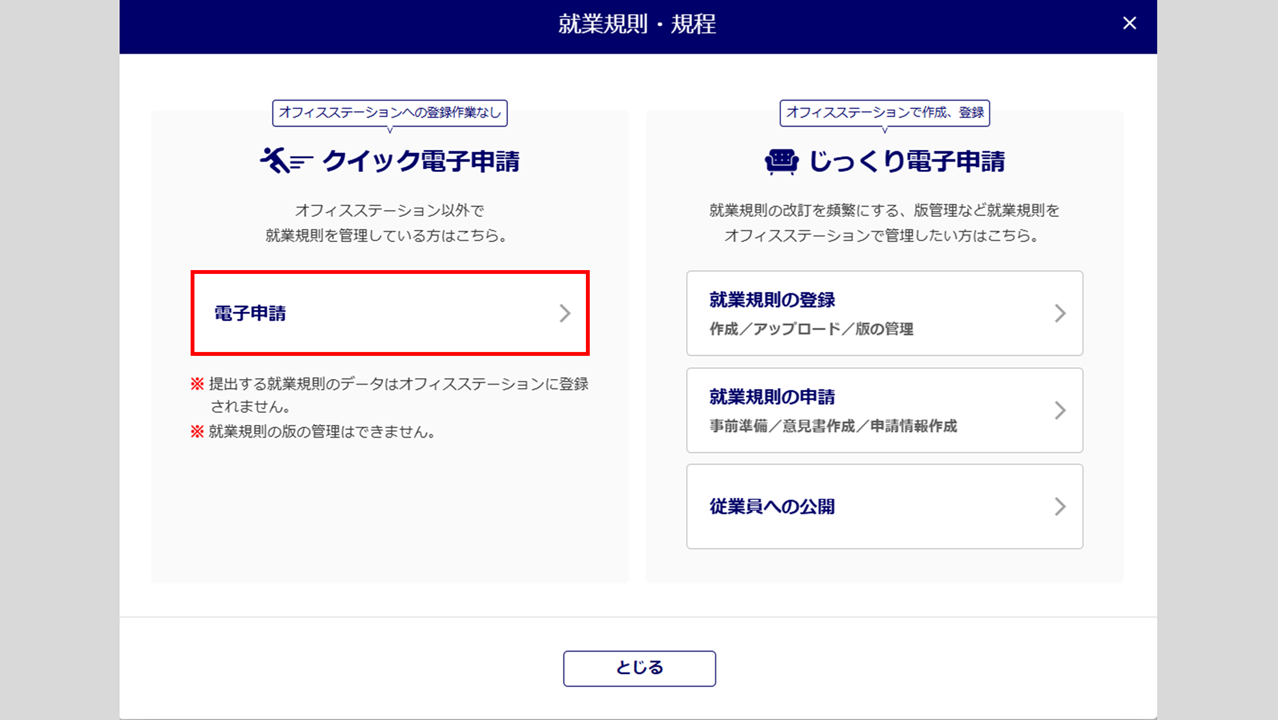 オフィスステーション以外で管理している就業規則の電子申請方法について、ご説明します。
