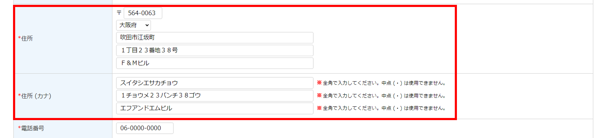「住所(カナ)」では、アルファベットを使用することはできません。