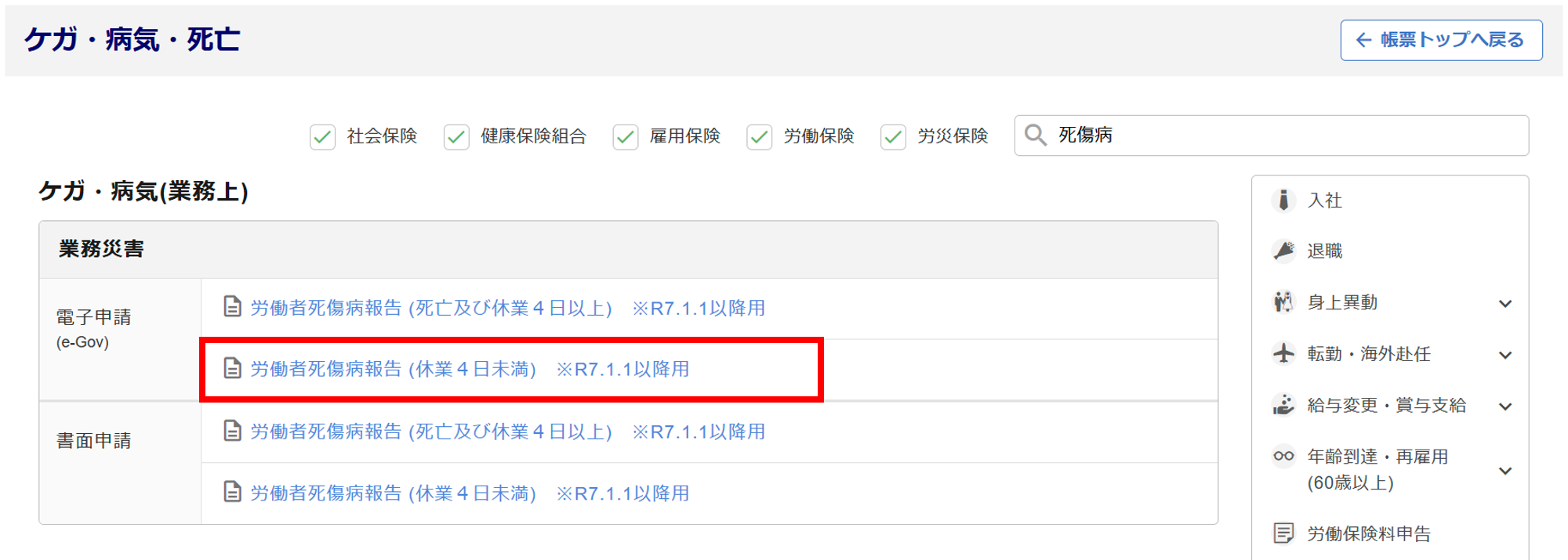 [労働者死傷病報告 (休業4日未満) ※R7.1.1以降用]をクリックします。