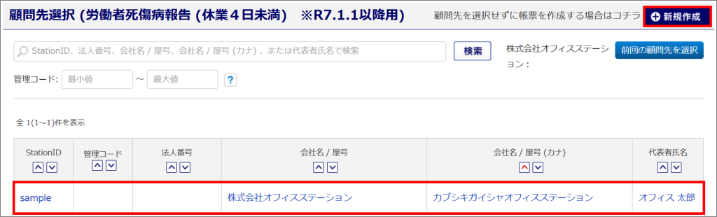 ※顧問先を選択せずにスポットでのお手続きの場合は、[新規作成]をクリックしてください。