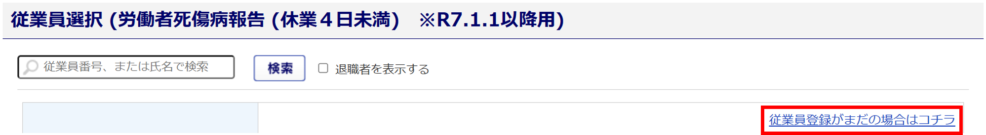 「従業員登録がまだの場合はコチラ」をクリックしご登録ください。
