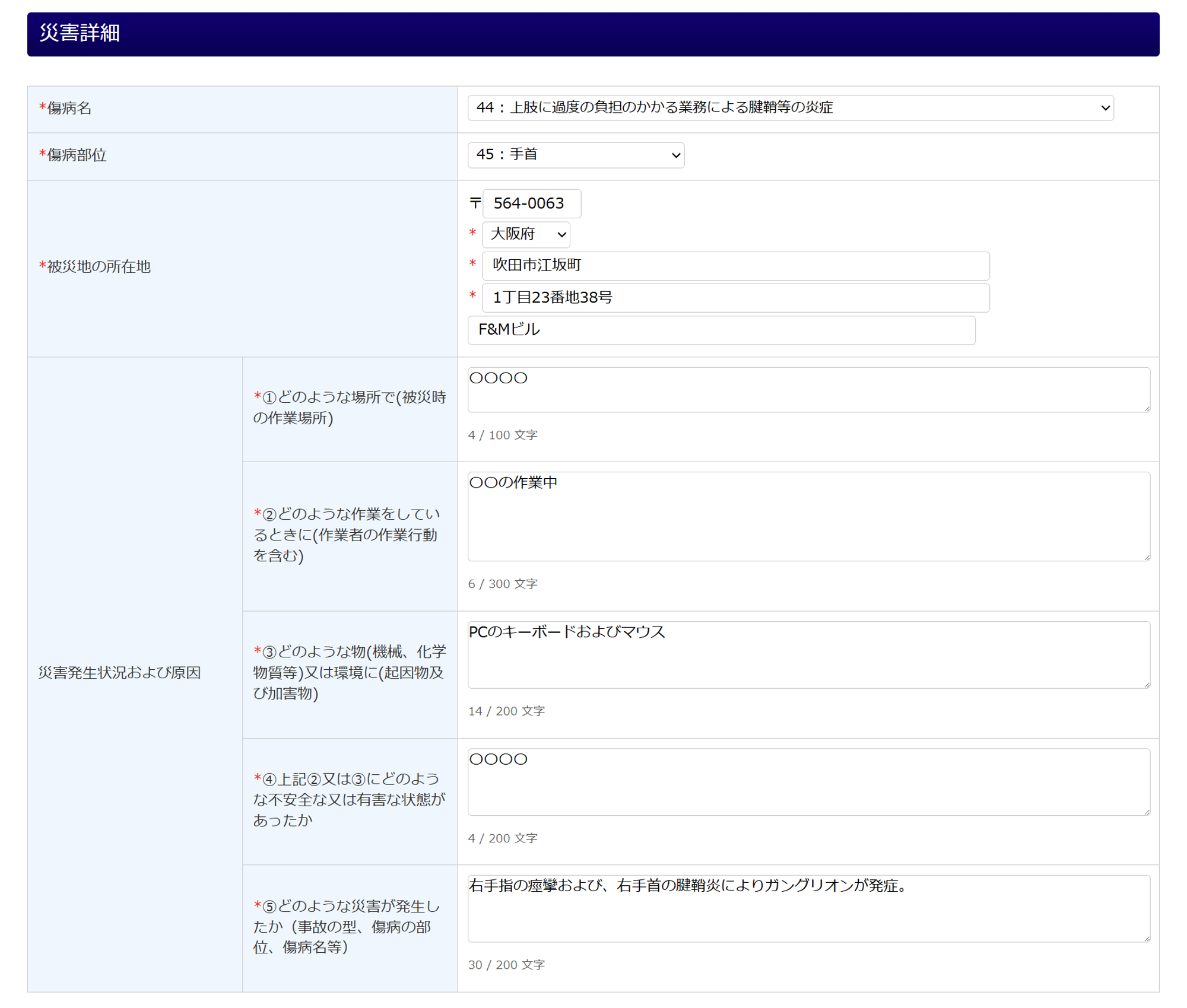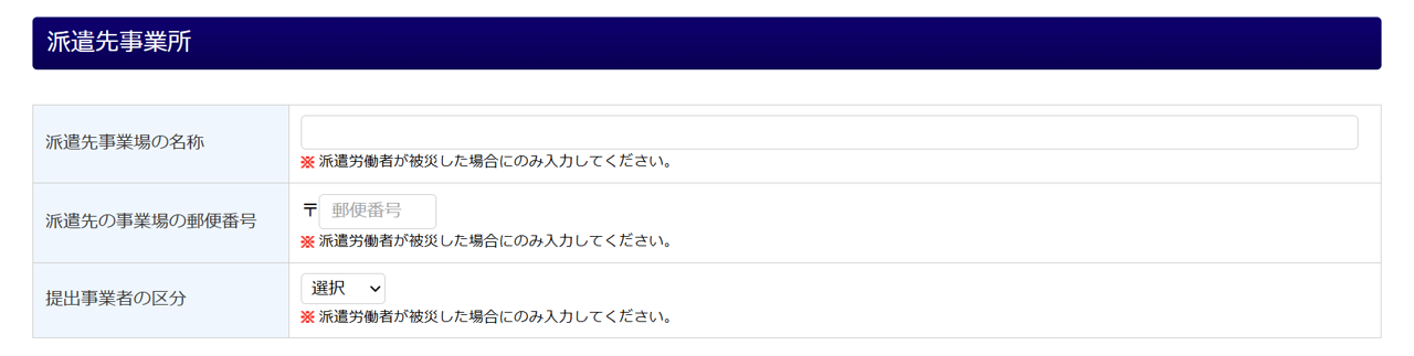 派遣労働者が被災した場合に、派遣先事業所を入力します。