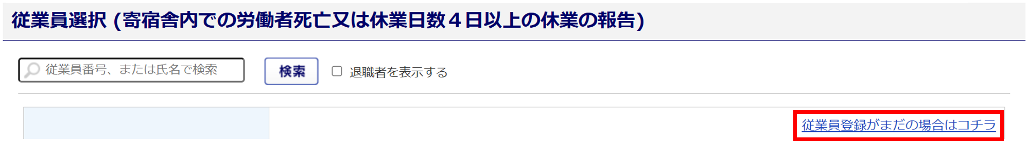 「従業員登録がまだの場合はコチラ」をクリックしご登録ください。