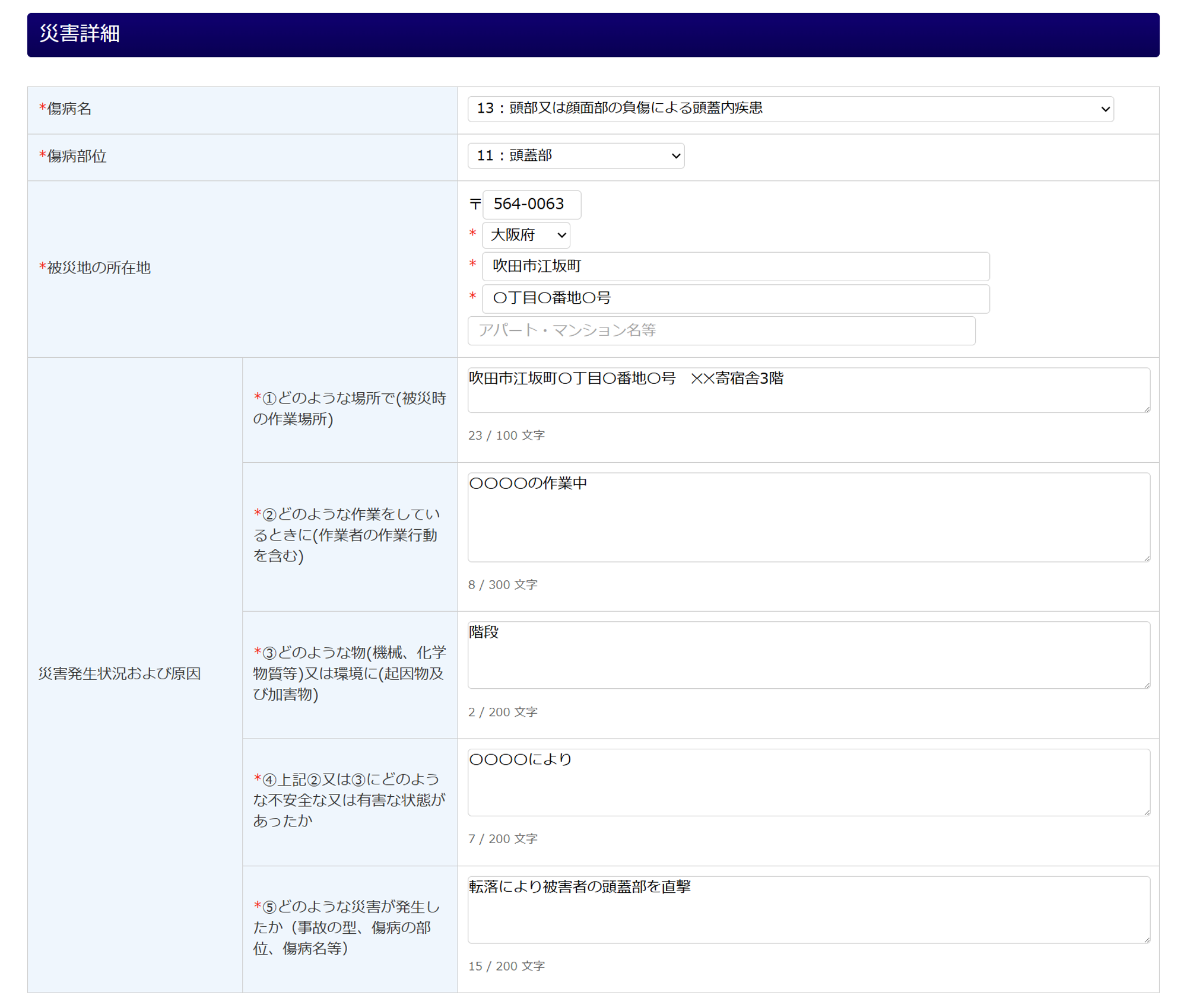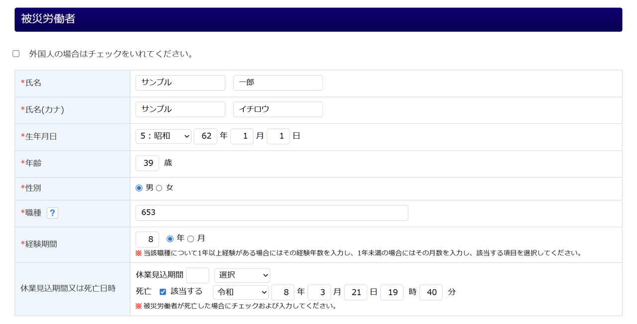 被災労働者の情報を入力します。