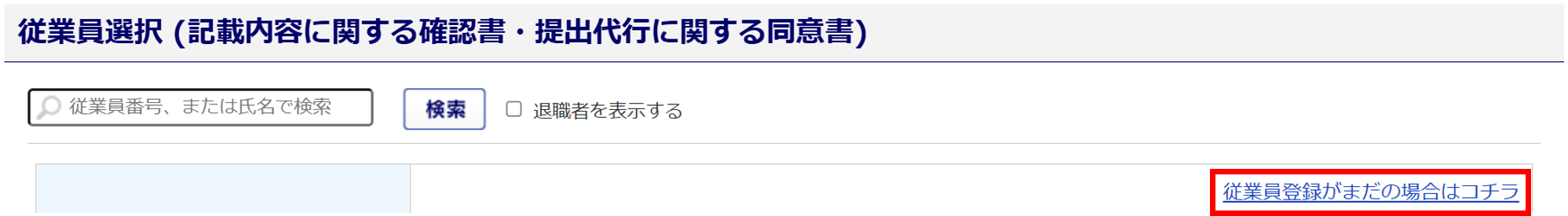 「従業員登録がまだの場合はコチラ」をクリックしご登録ください。
