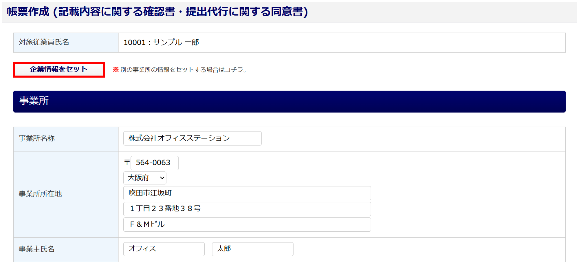 他事業所の情報をセットする場合は、[企業情報をセット]をクリックします。