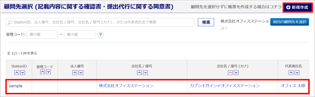 ※顧問先を選択せずにスポットでのお手続きの場合は、[新規作成]をクリックしてください。