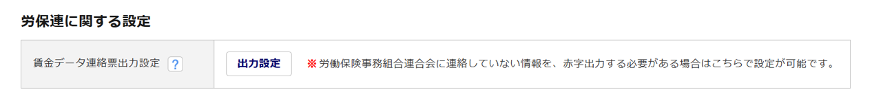 労保連に提出する賃金データ連絡票について、出力の有無や赤字出力などの設定をおこなう場合、[出力設定]をクリックし、設定します。