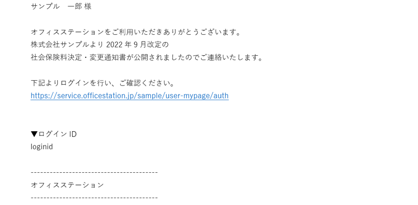 ・件名  : [オフィスステーション]社会保険料決定・変更通知書が公開されました