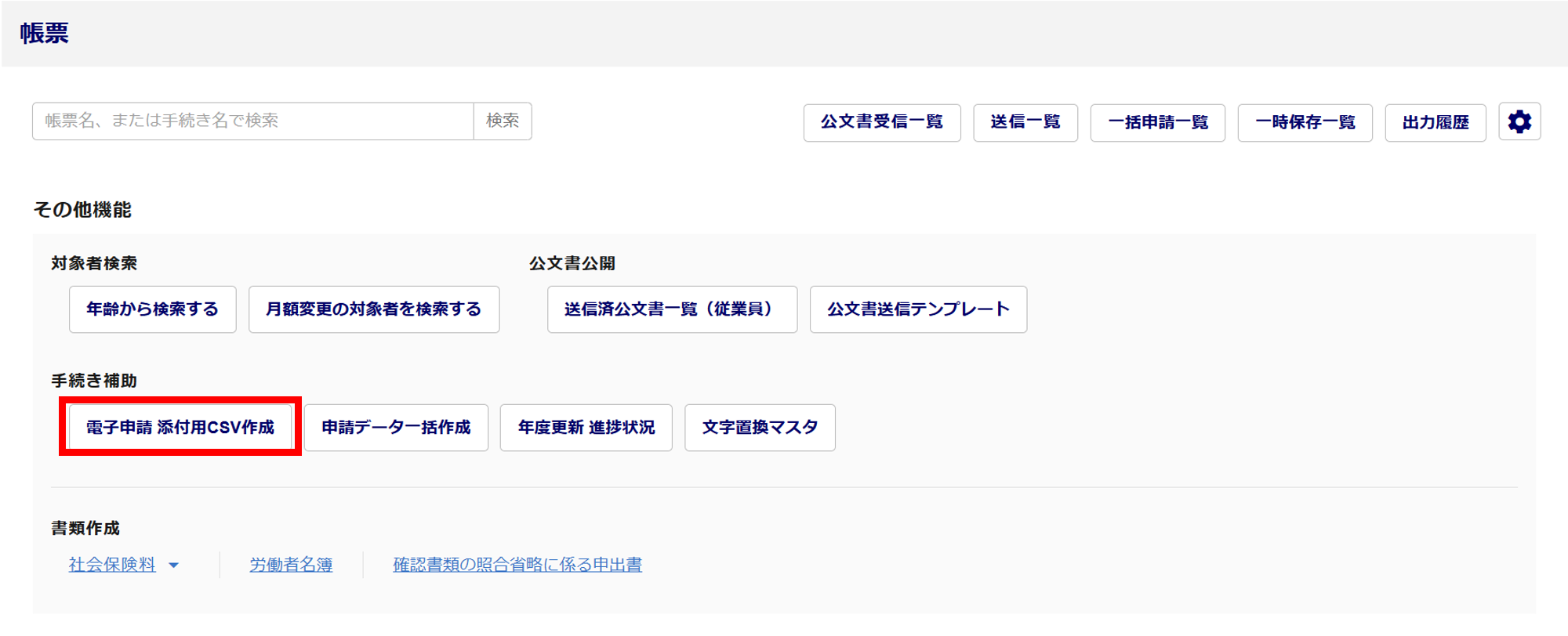 [電子申請 添付用CSV作成]で作成したCSVファイルを用いて電子申請をおこなう方法について、ご説明します。