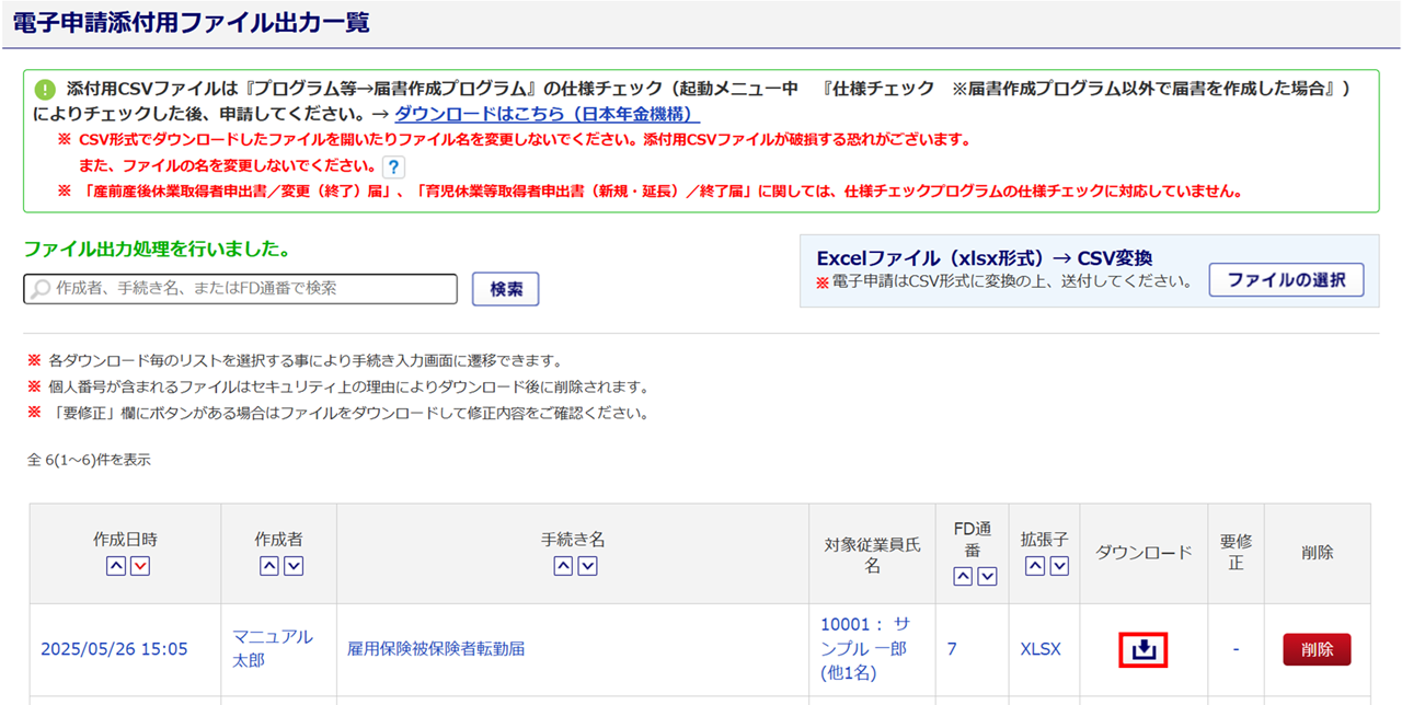 作成したCSVファイルの電子申請方法は、以下の関連記事の「ダウンロード一覧からの申請」をご参照ください。