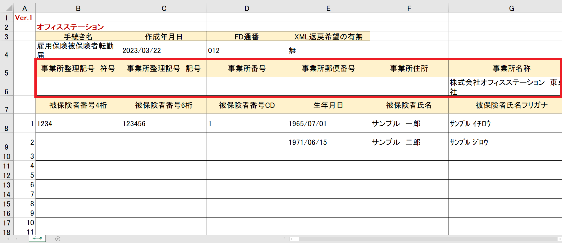 「雇用保険被保険者転勤届 連記式 (外部CSVファイル添付方式)」の手続き時に添付するCSVファイルをオフィスステーションにて作成する方法について、ご説明します。