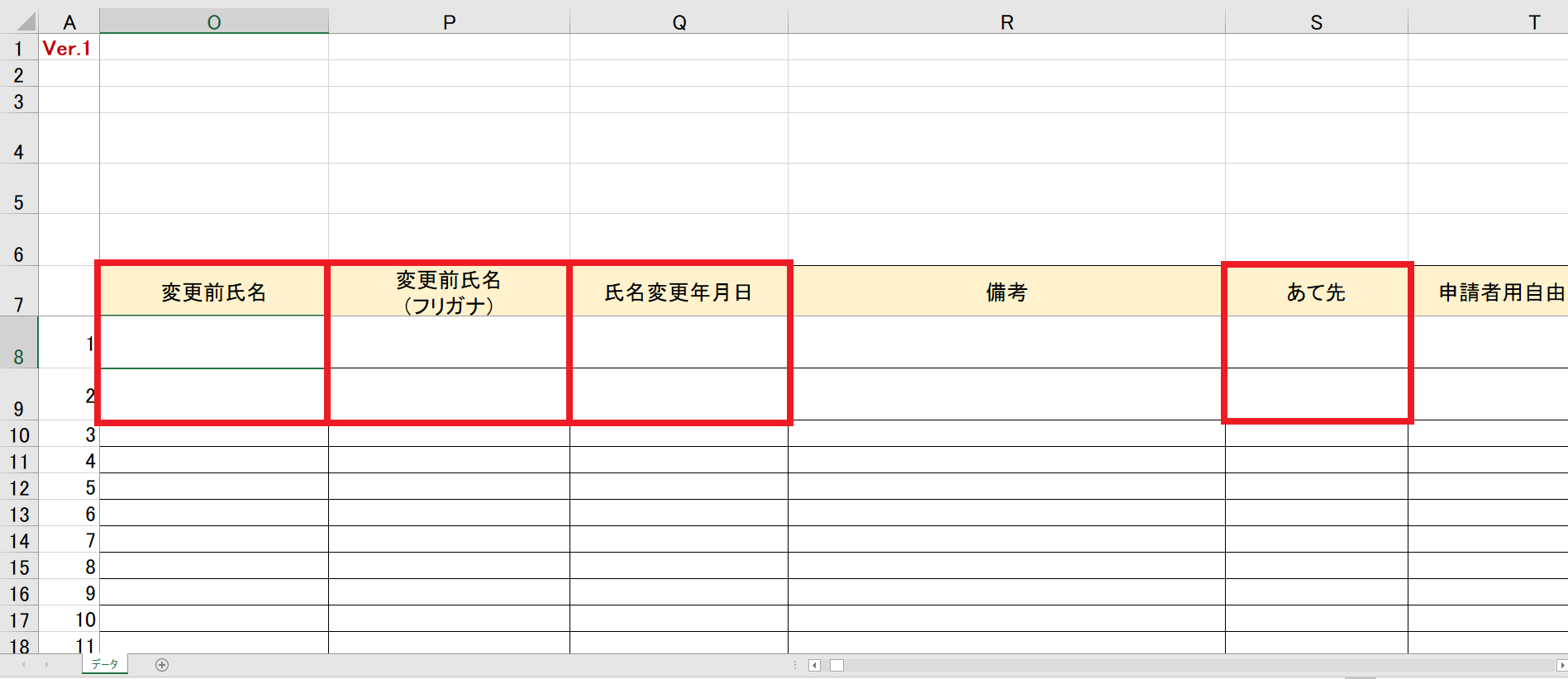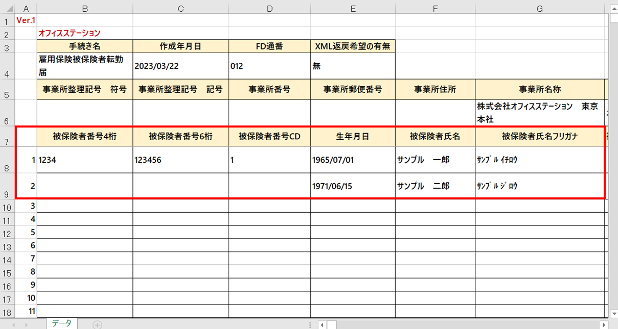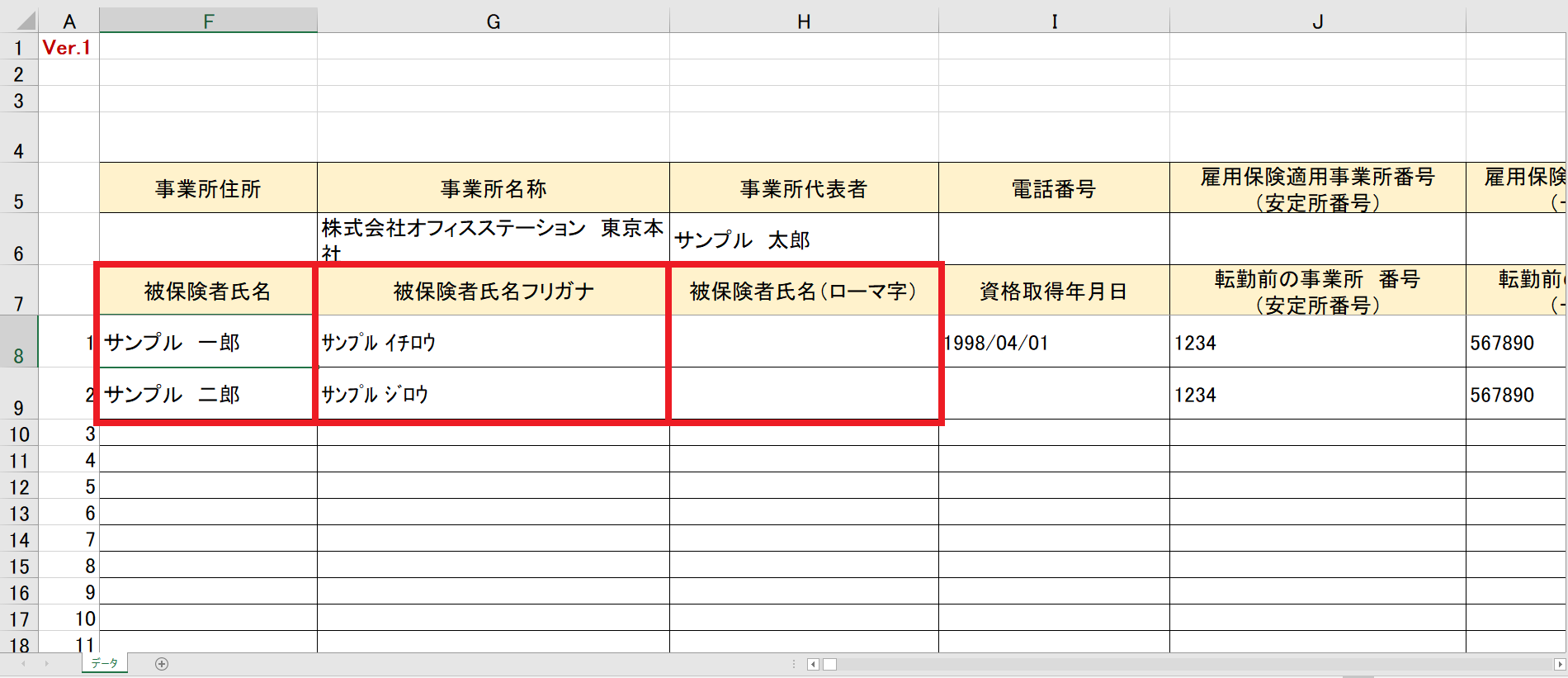 被保険者の情報は、 7行目以降に反映されていますので、被保険者の情報を設定します。