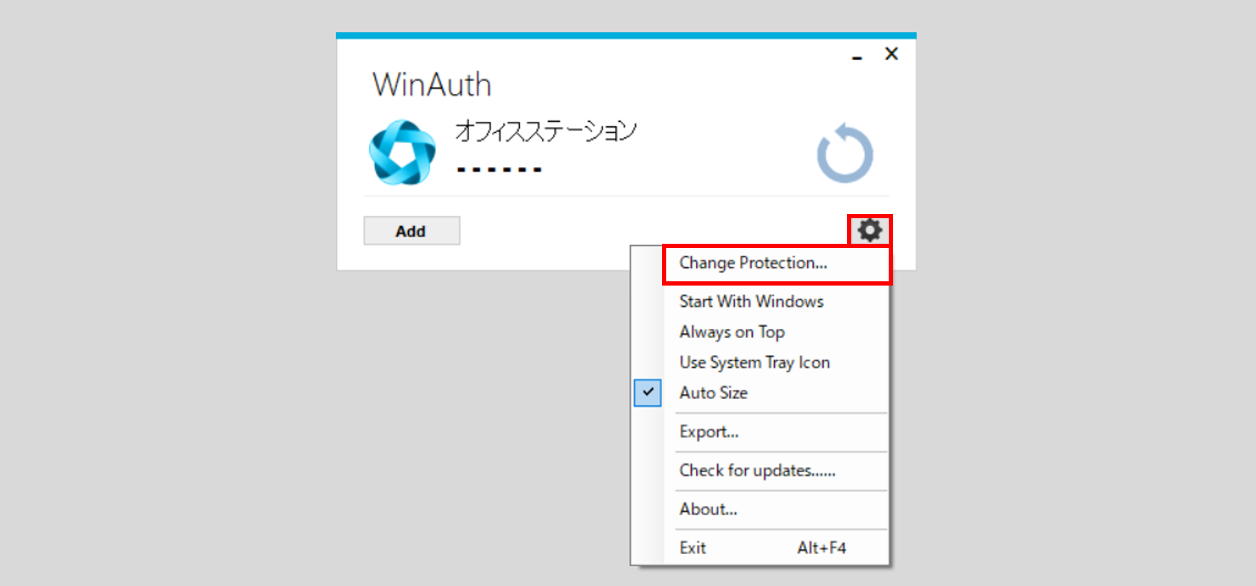 「WinAuth.exe」アプリを開き、[Add]をクリックします。