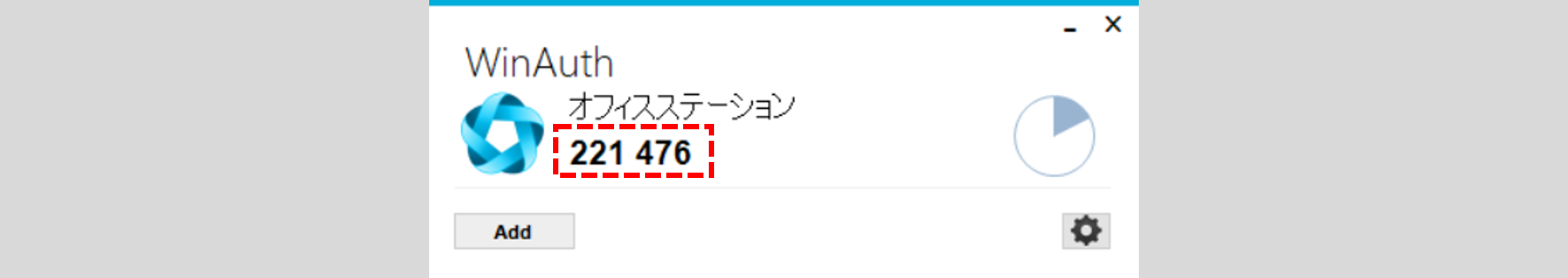 ※ワンタイムパスワードは一定時間で変更されます。都度、「WinAuth.exe」をご確認ください。