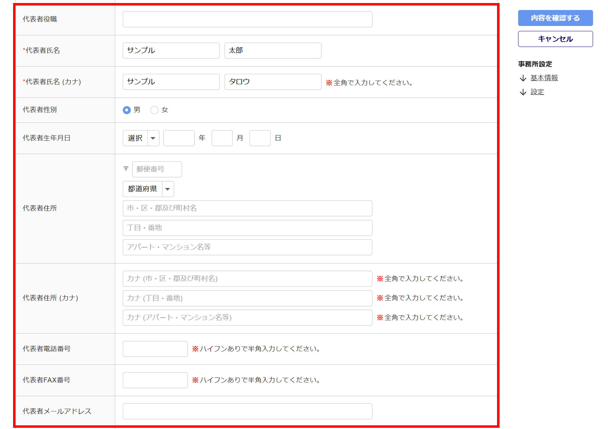 - 代表者に関する項目