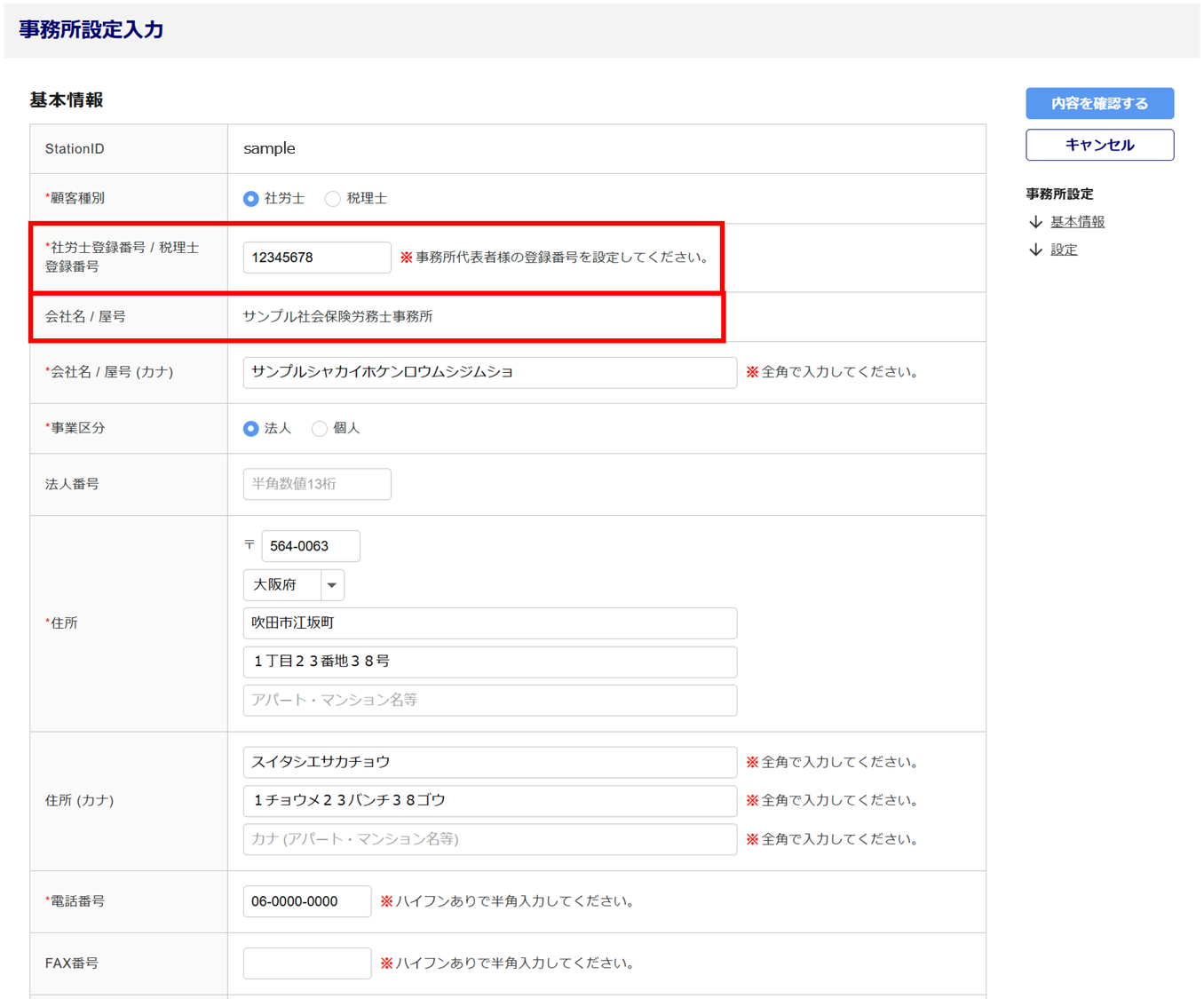 - 事務所情報自動セット