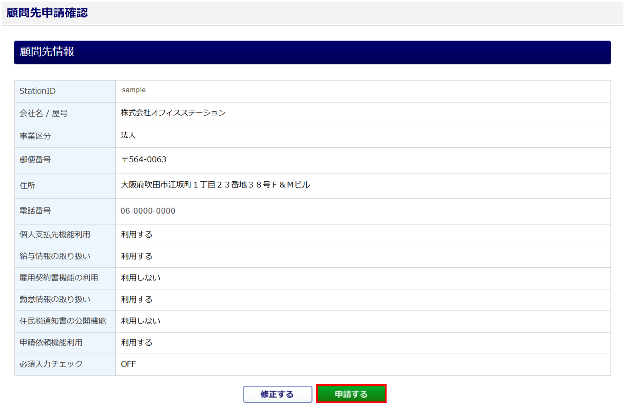 内容を確認し、[申請する]をクリックします。