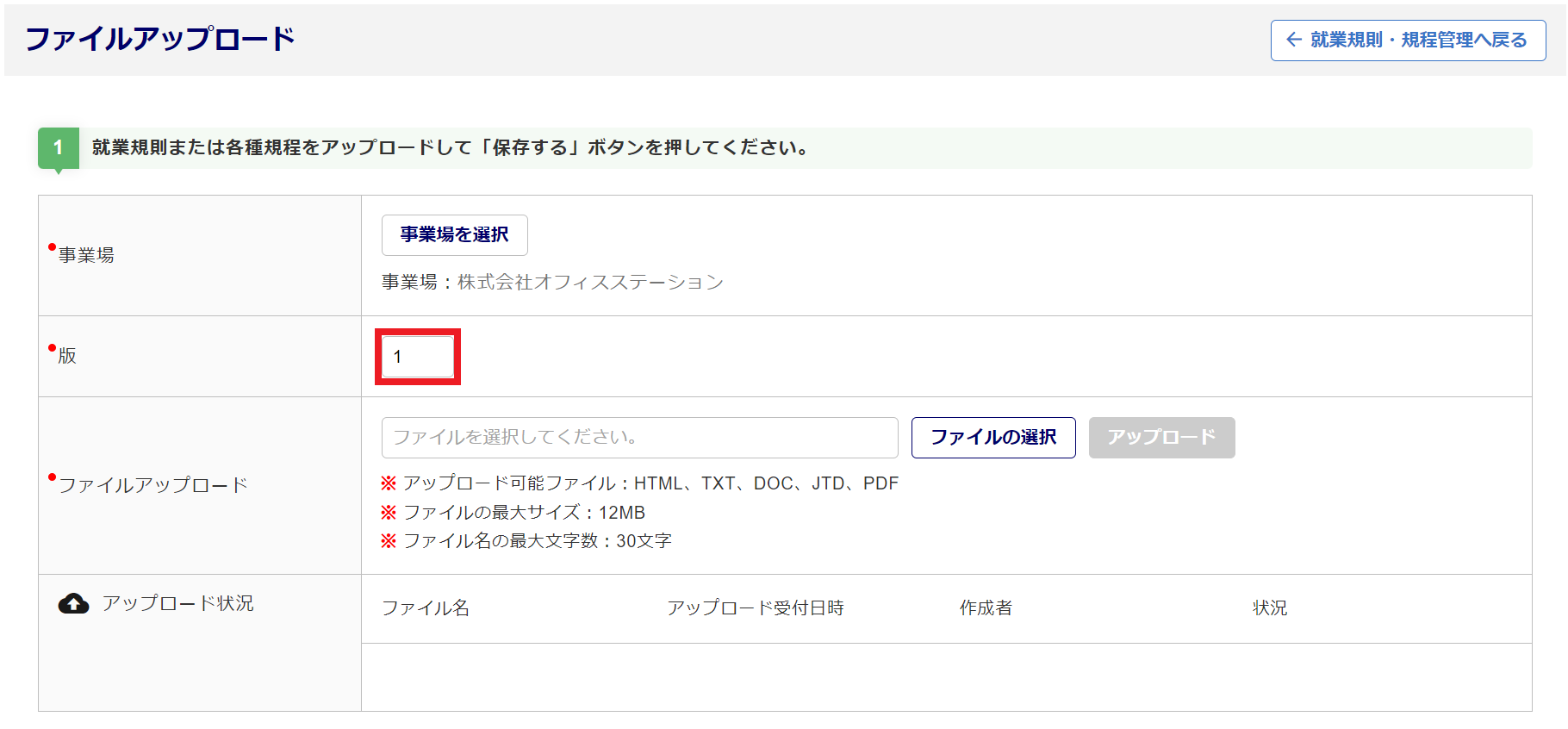 これから作成する就業規則や規程の「版」を入力します。