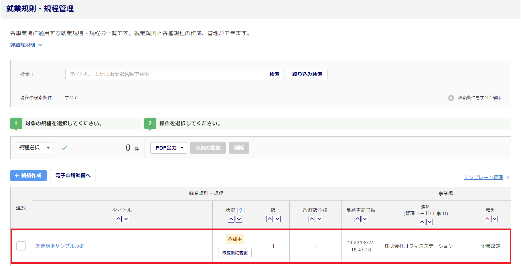 就業規則・規程管理画面の一覧に反映されたら、取り込みは完了です。
