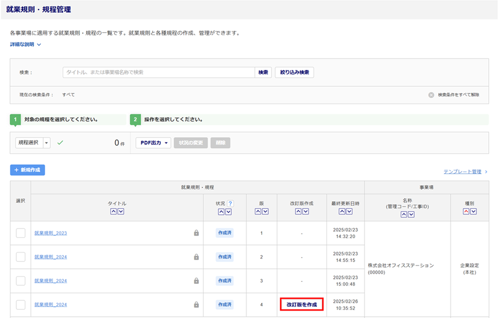 オフィスステーションに登録した就業規則や規程の改訂や版管理など管理する方法について、ご説明します。