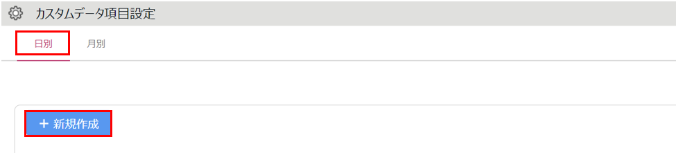 1.ホーム画面「設定」内[画面表示]>[カスタムデータ項目設定]をクリックし、「日別」タブ内の [新規作成]をクリックします。
