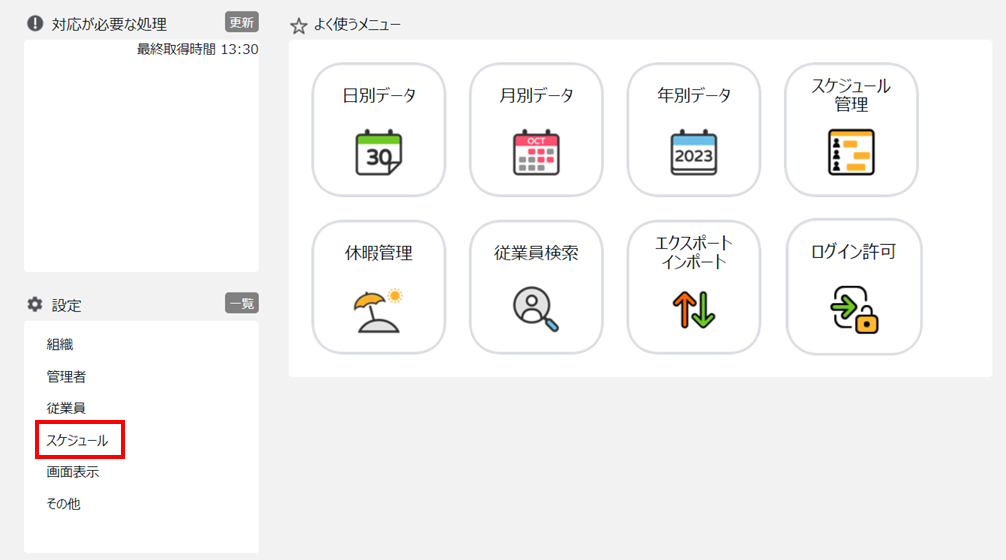 上記の設定後、過去の集計データに変更を反映するには、勤怠データ再計算を実施してください。