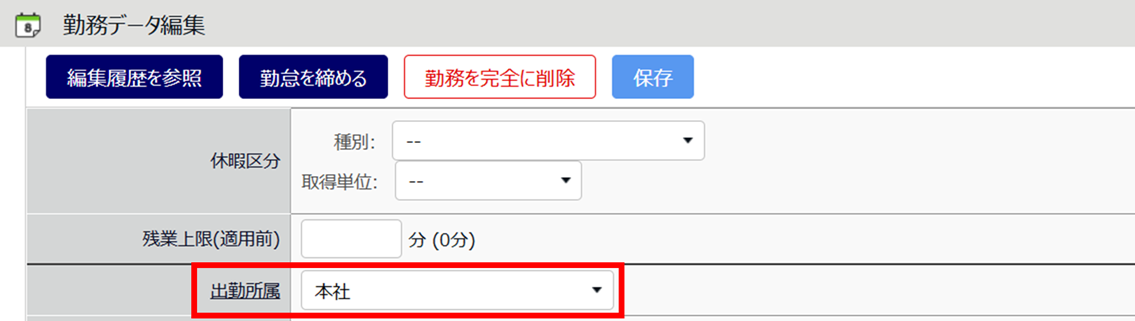 既存の勤務データで出勤所属が他所属として記録されている場合は、手動編集をすることでパターンの選択ができるようになります。