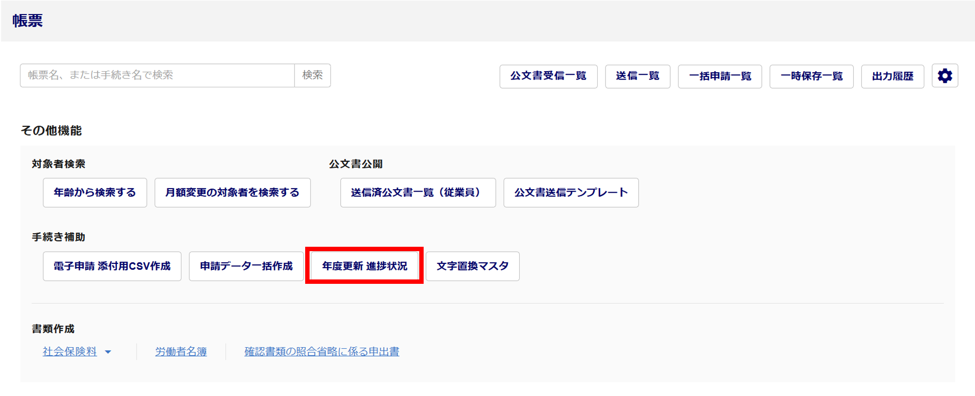 [年度更新 進捗状況]をクリックします。