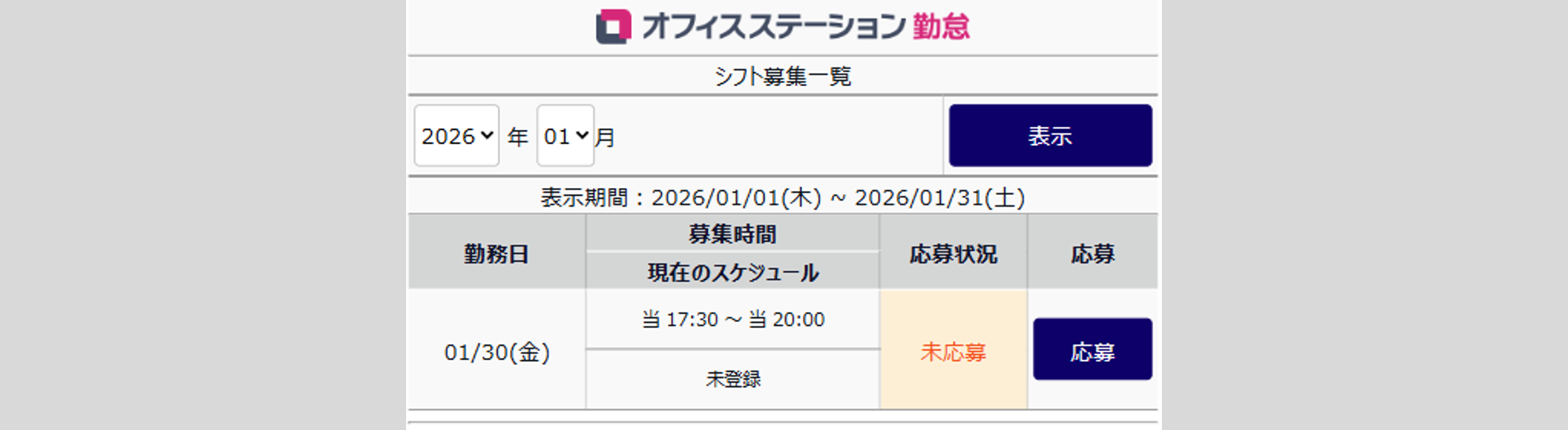 管理者が現在募集しているシフトに応募できます(詳しくはこちら)。