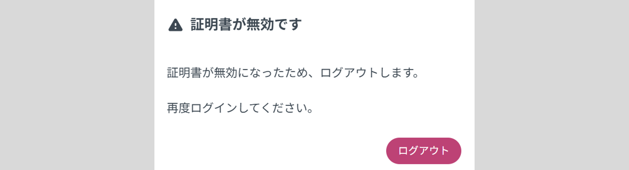 1.タイムレコーダーURLにアクセスすると、「証明書が無効になったため、ログアウトします。再度ログインしてください。」というメッセージが表示されます。