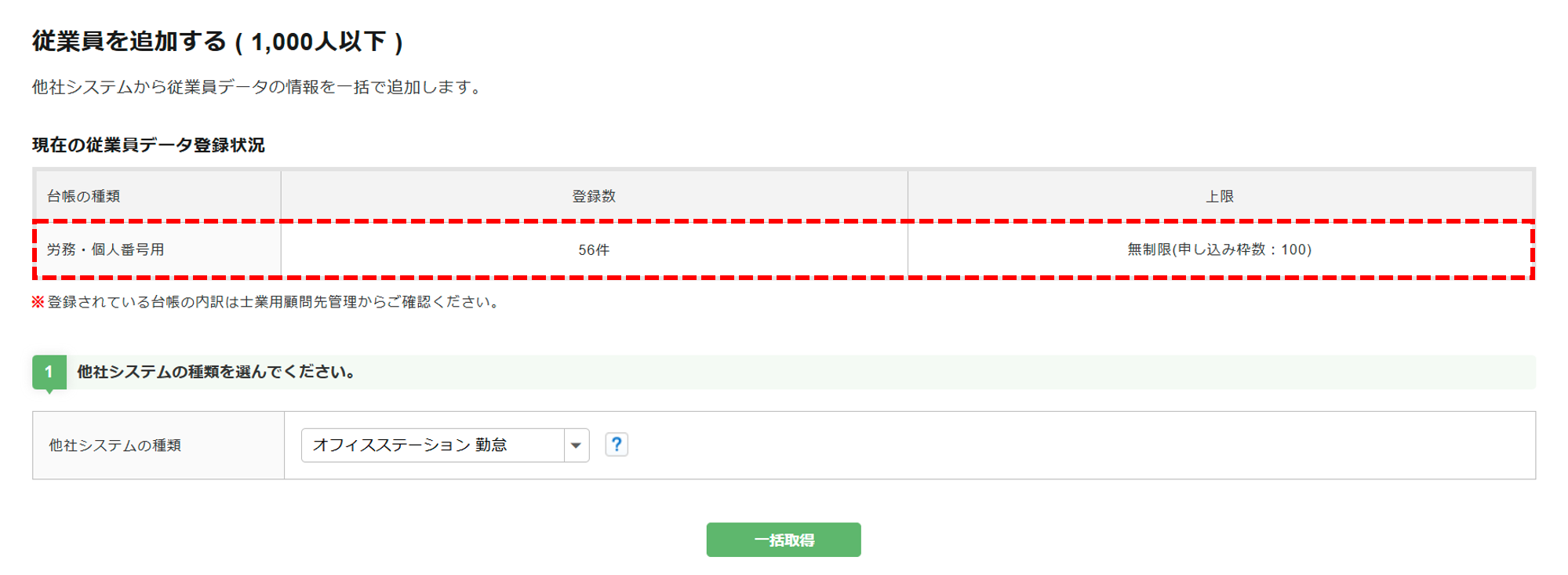 ※「オフィスステーション 勤怠」からの従業員の追加は、「1,000人以下」を選択時のみ可能です。