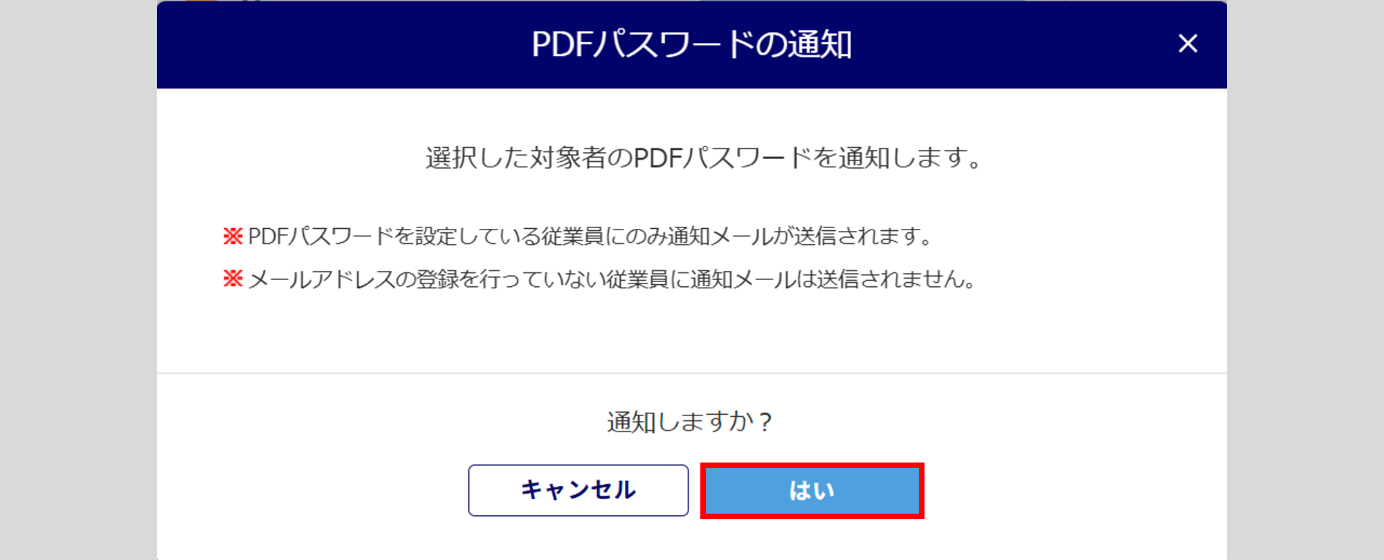 従業員によるPDFパスワードの設定はできません。
