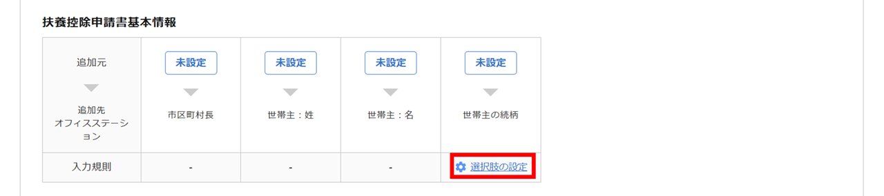 「扶養家族情報」テンプレート項目の紐付け