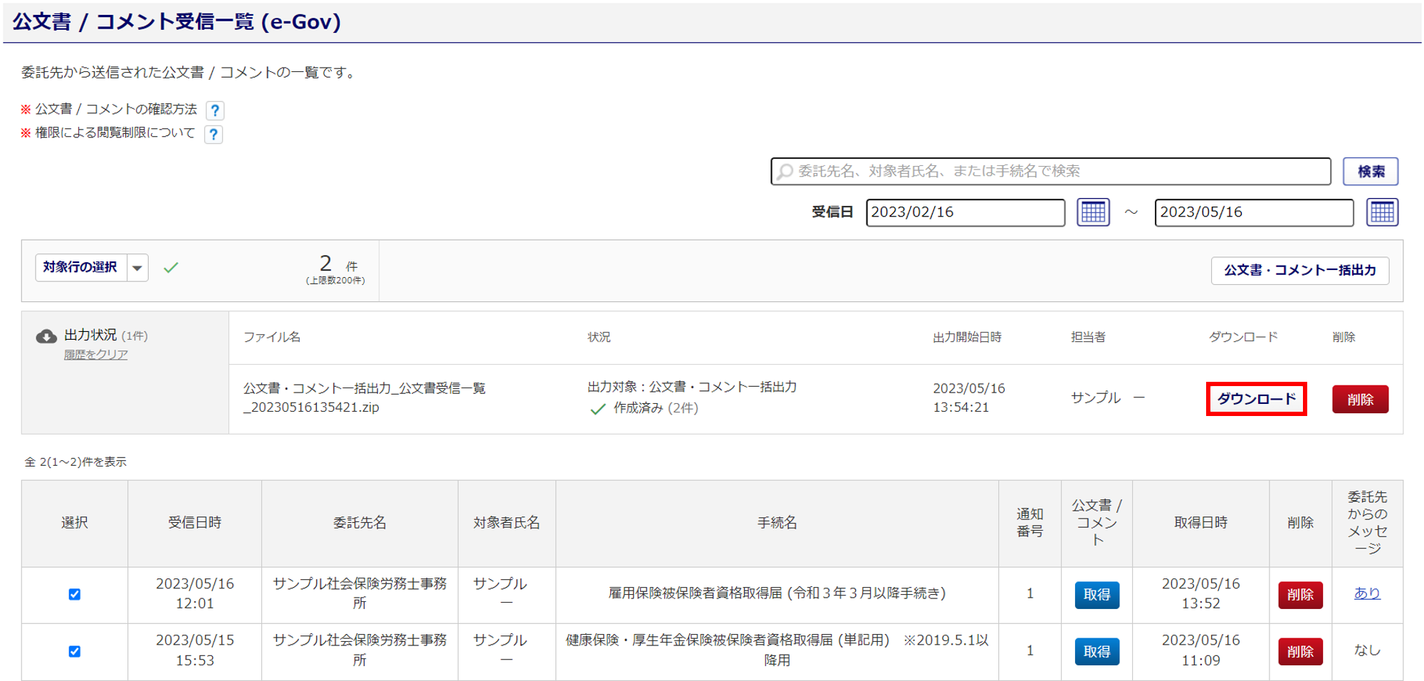 委託先社労士から受信した公文書の取得方法をご説明します。