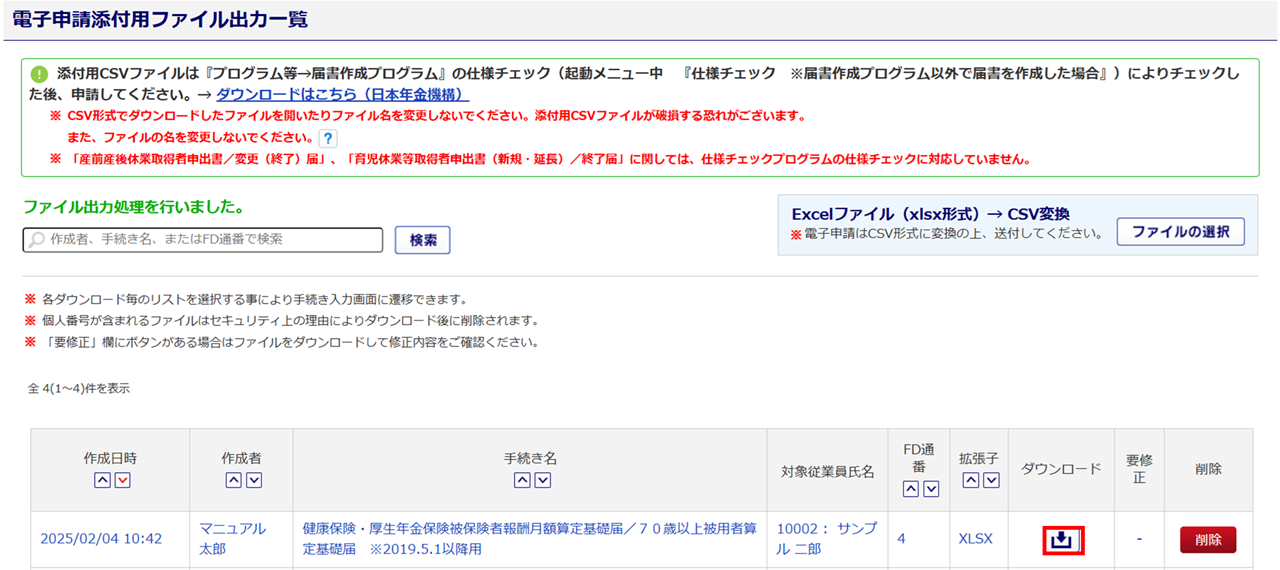 ※個人番号を出力する場合は、ファイルのダウンロードは一度のみしかできません。