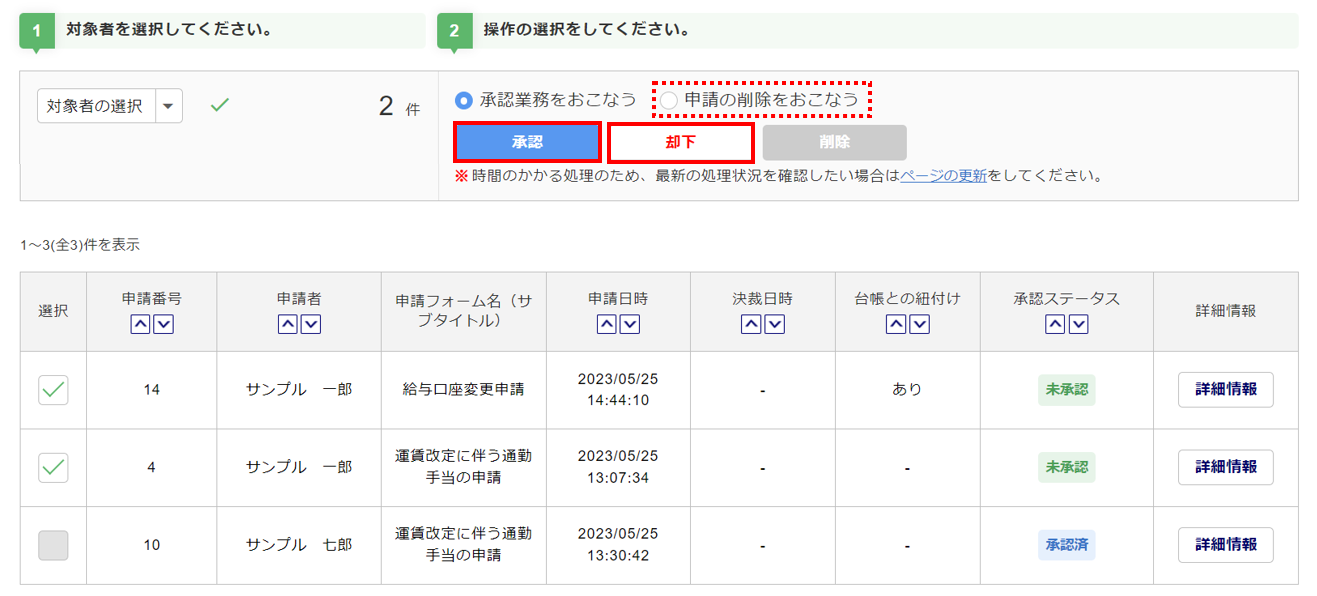 一括で承認・却下
