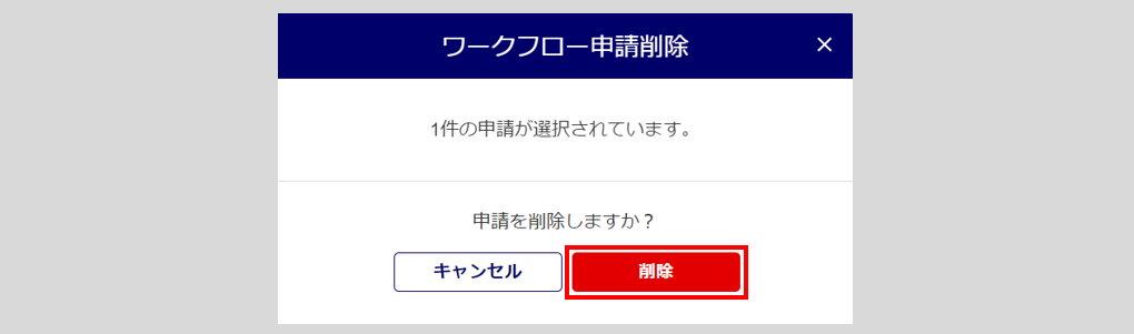 「ワークフロー申請削除」ウィンドウが表示されます。[削除]をクリックします。