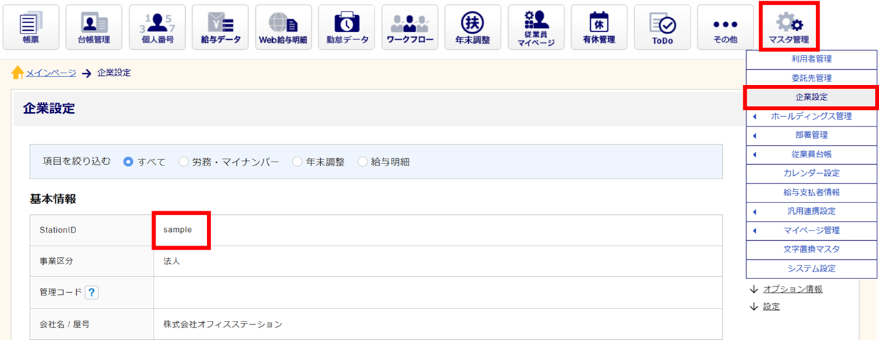 画面上部に記載の「StationID(ステーションID)」が、連携時に必要となります。