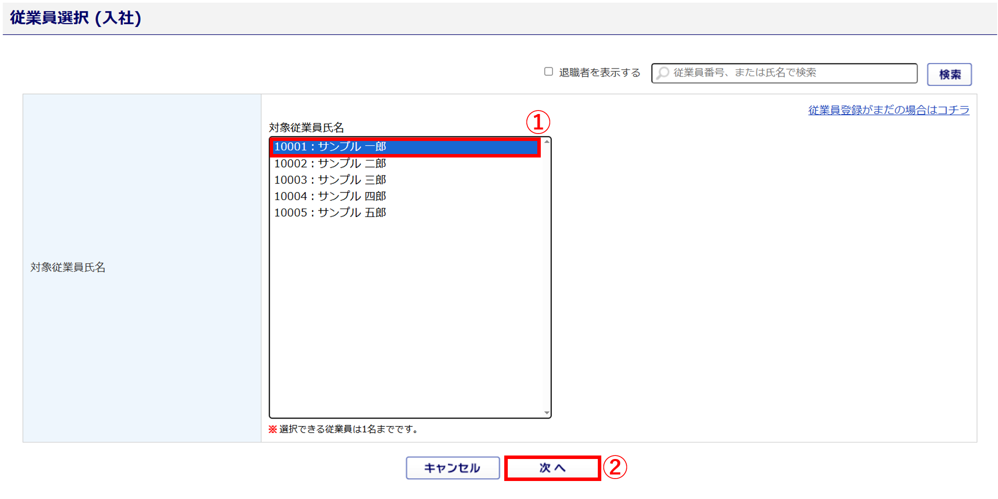 ※選択できる従業員は1名までです。